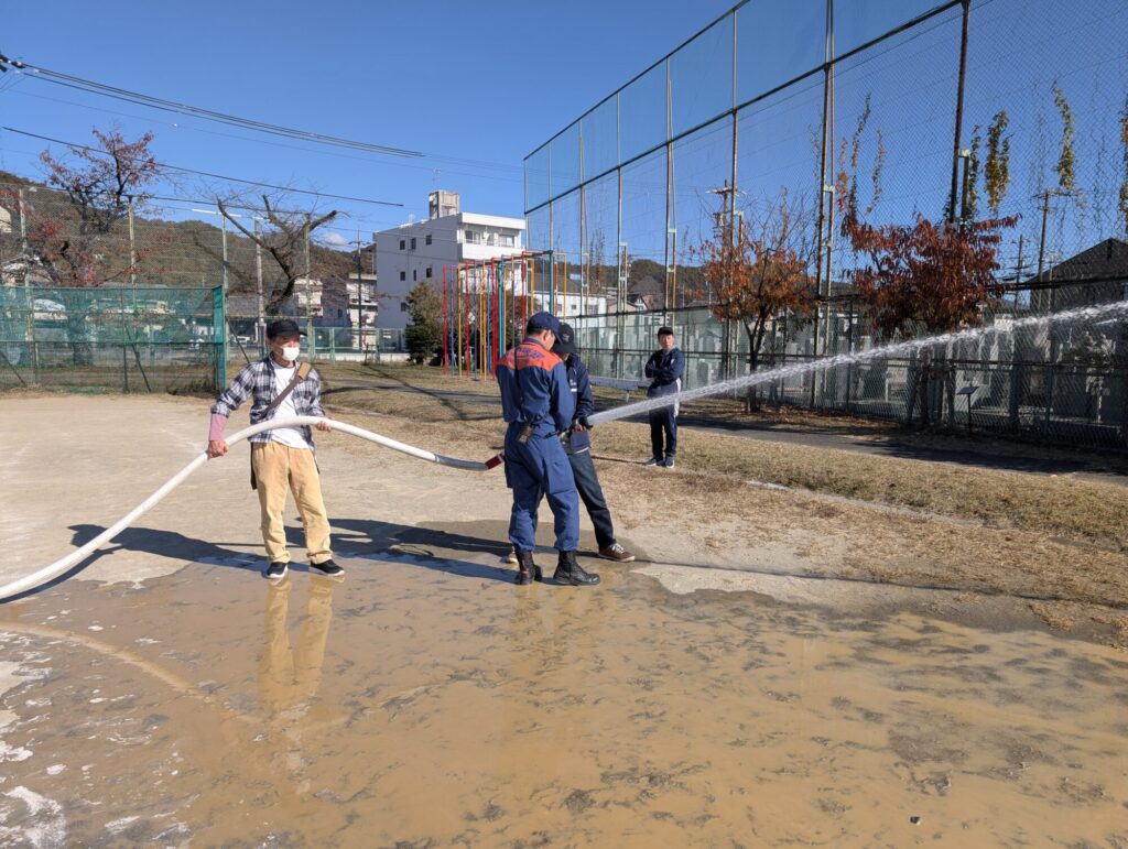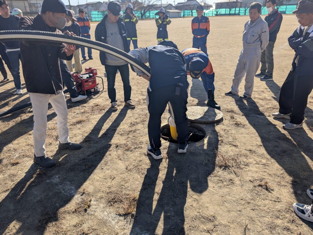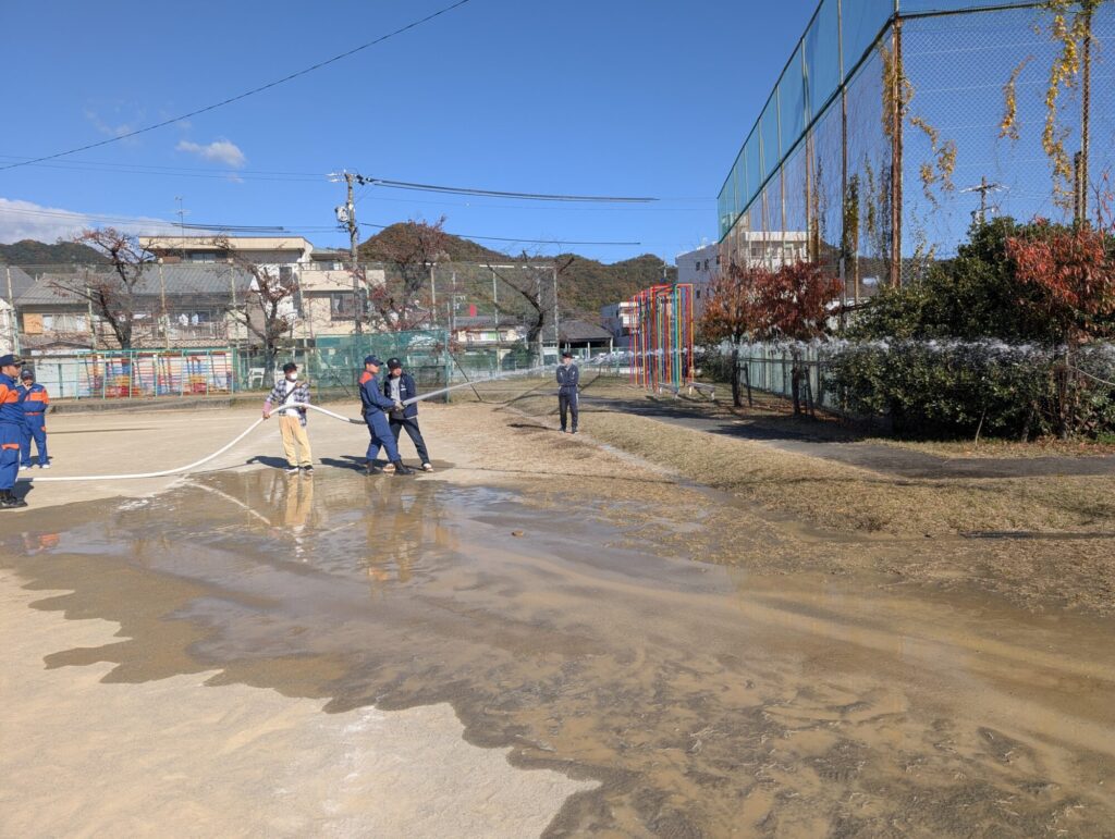 長森西小学校グラウンドにおいて「令和7年度 長森西自主防災訓練・放水訓練」を実施しました